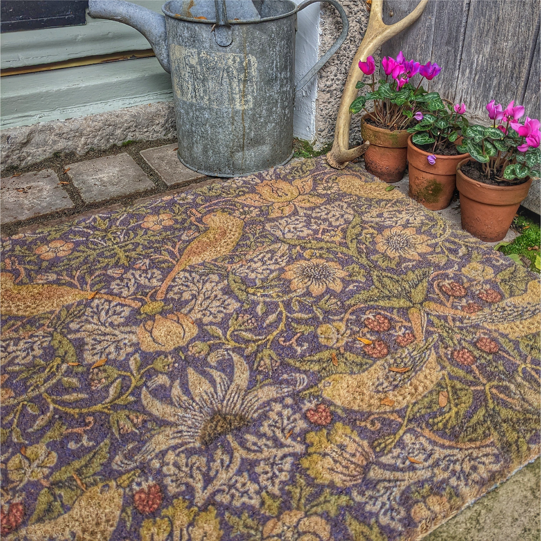 Designed to withstand heavy foot traffic, it features a natural anti-slip backing for secure placement, making it ideal for both indoor use and sheltered outdoor spaces. The iconic William Morris Strawberry Thief pattern adds sophistication and style to any entrance, complementing a variety of décor styles.