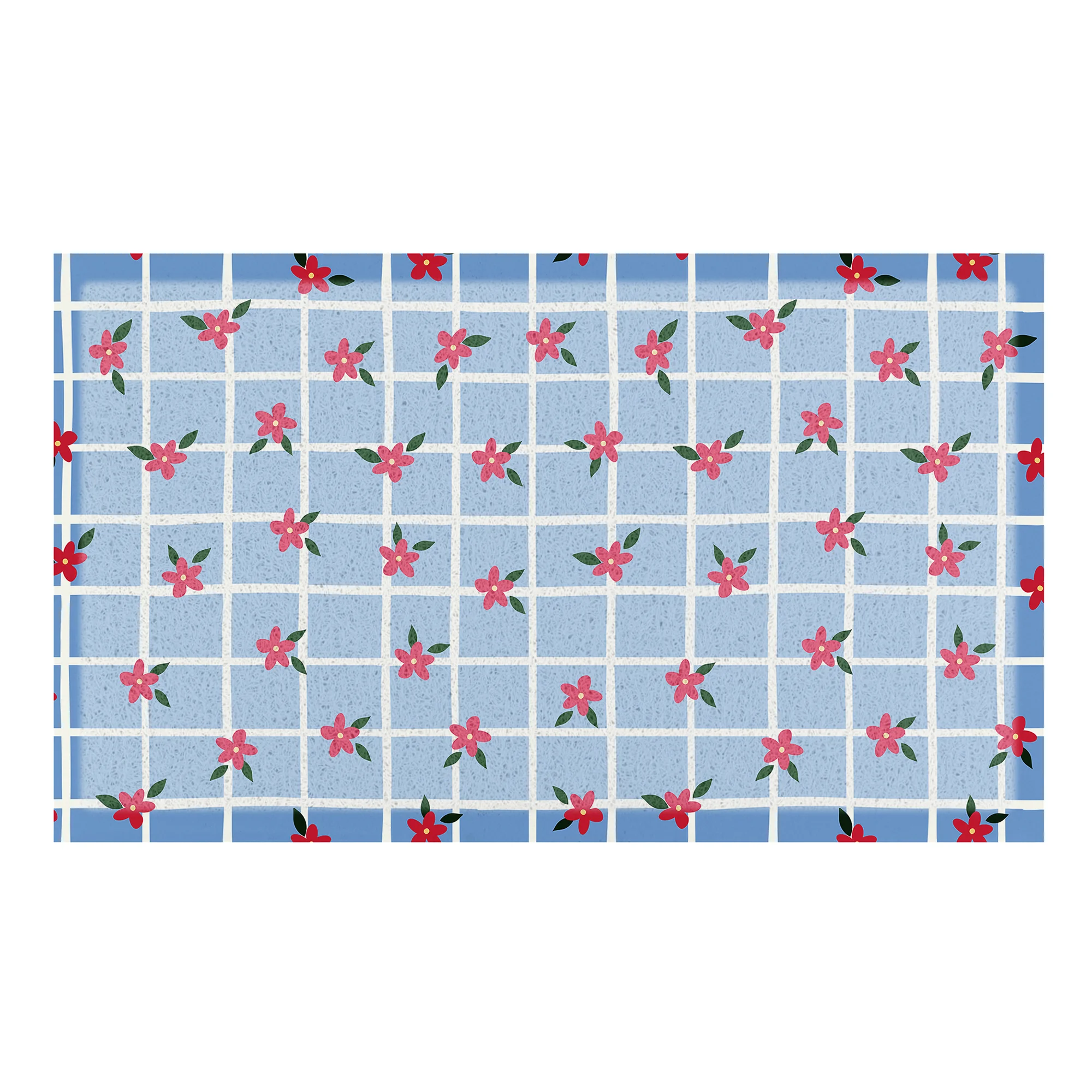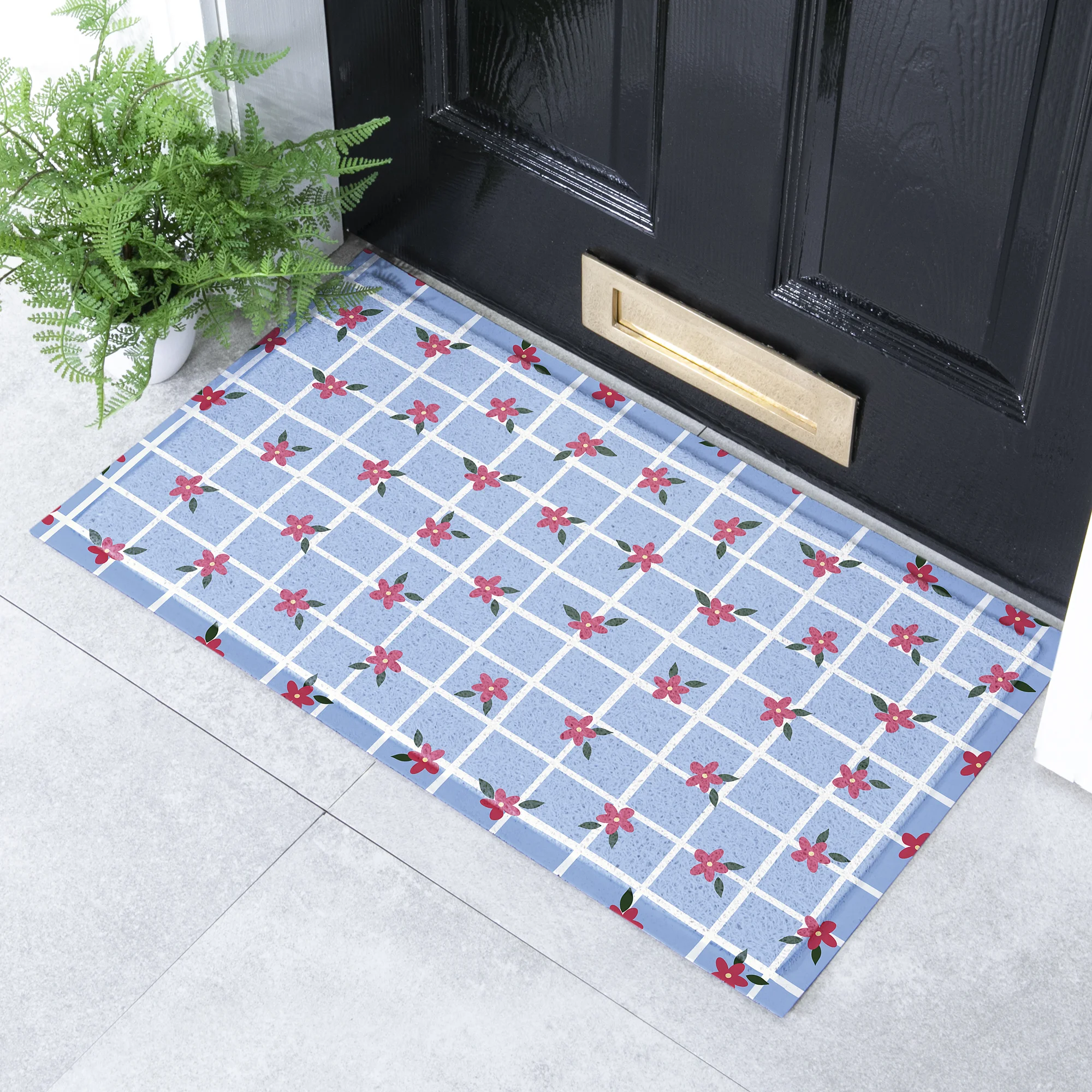 Add a pop of colour and charm to your entrance with our Blue Check Outdoor Doormat, featuring a classic checked pattern accented with sweet red flowers. This cheerful, painted-style design combines style and practicality for a welcoming doorway.