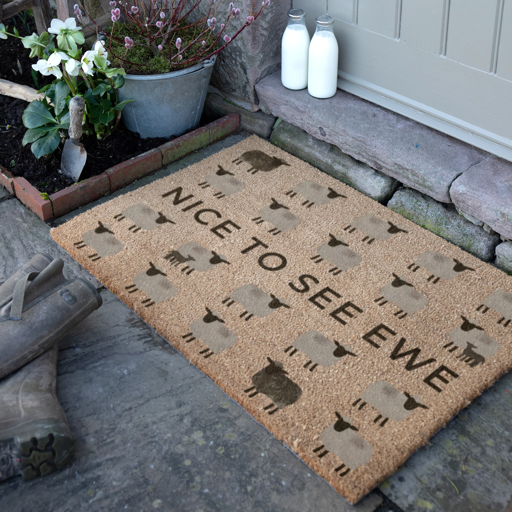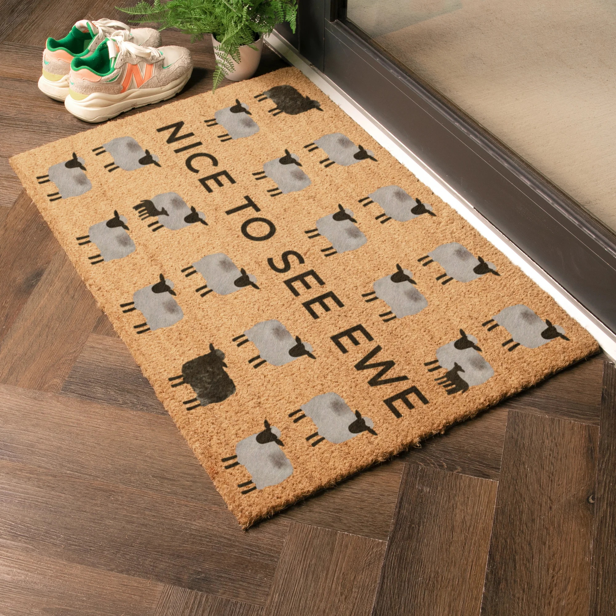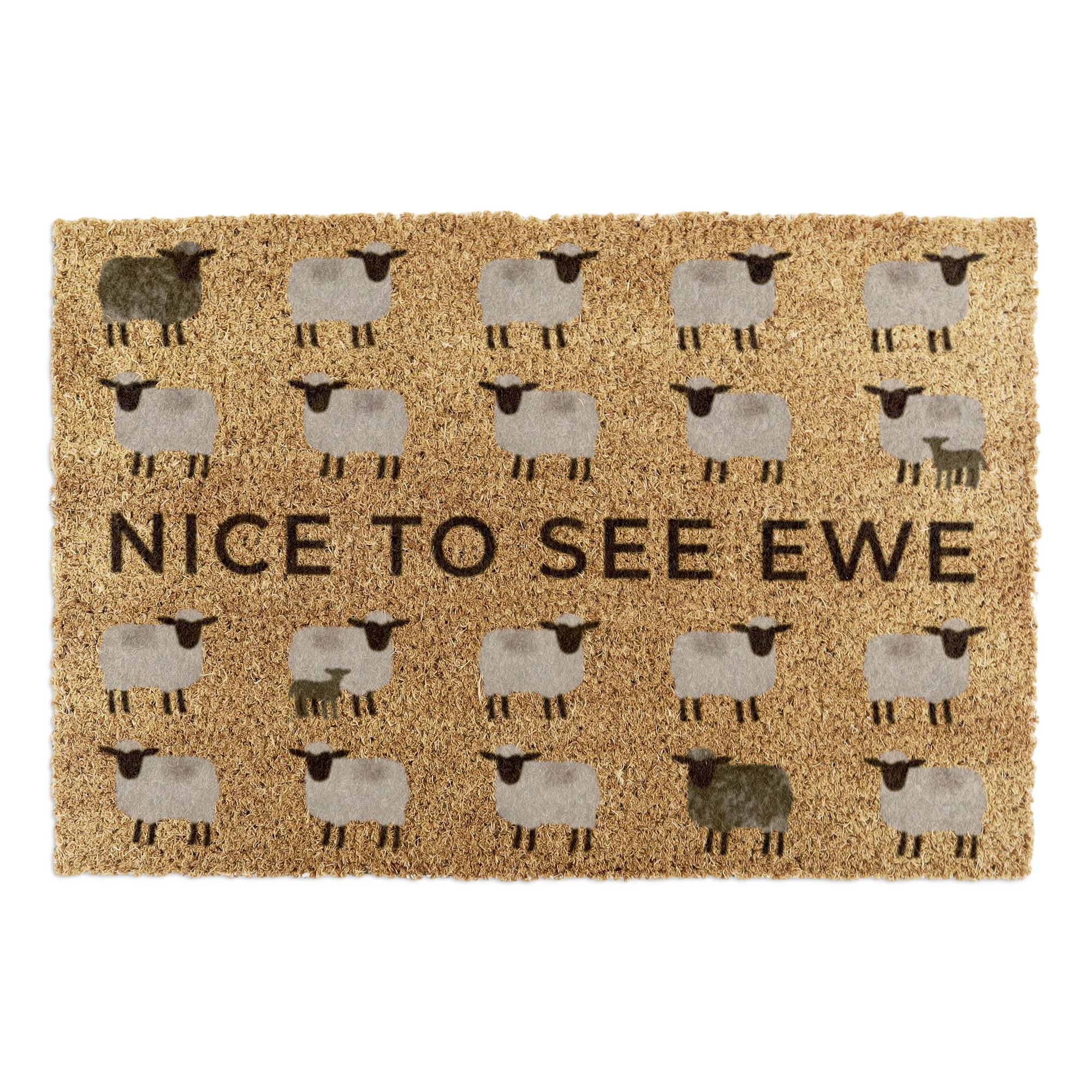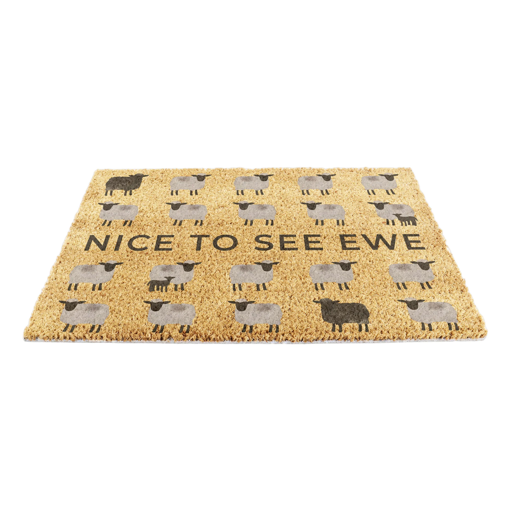 Add a playful touch to your doorway with the Nice To See Ewe Sheep Coir Doormat. Featuring a charming sheep design and a clever pun, this mat brings personality and warmth to your entrance while keeping floors clean.