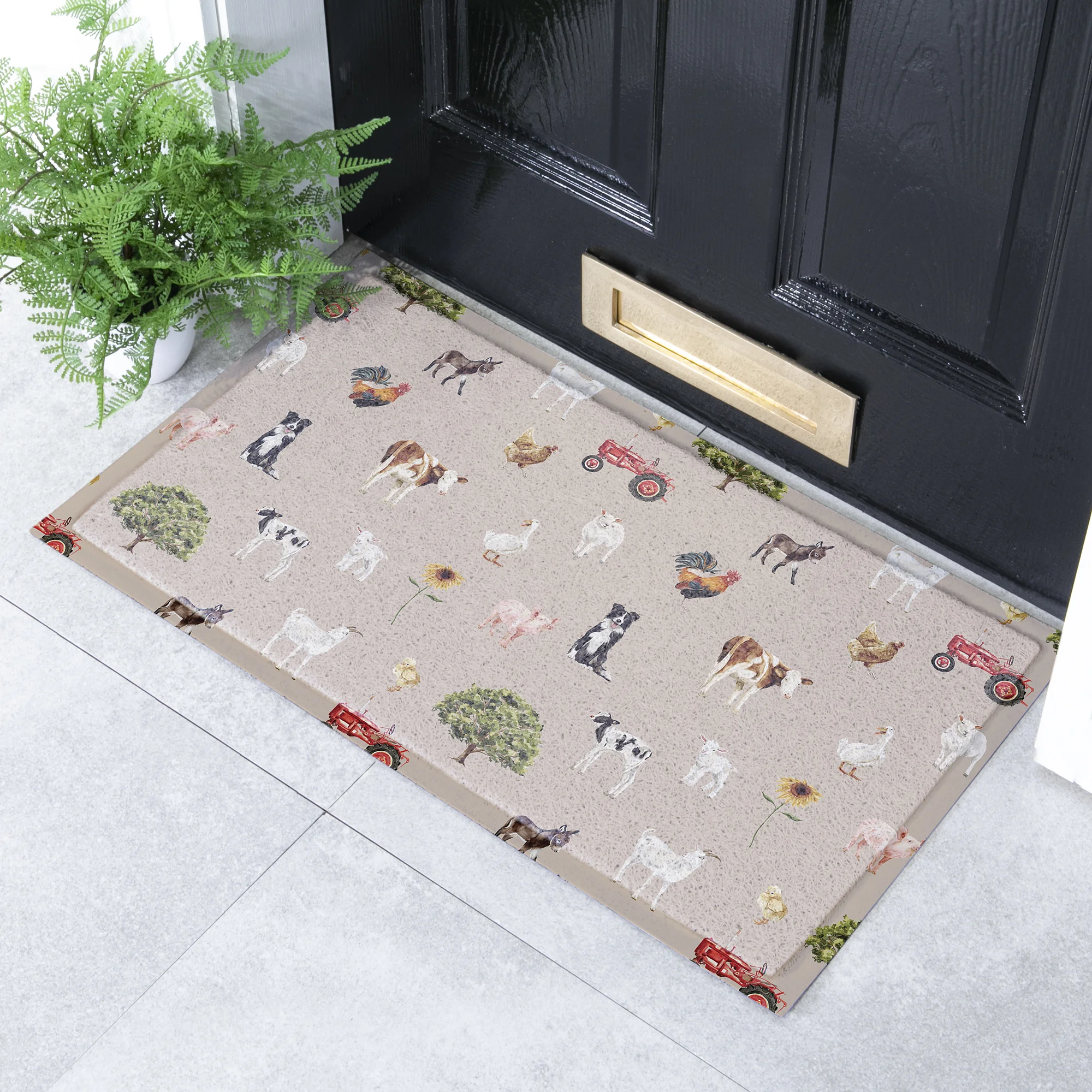 Celebrate the charm of the countryside with our Farm Life Outdoor Doormat, featuring a playful collection of farm-inspired icons that bring character and warmth to your entrance. From tractors to animals, this detailed design adds a welcoming, rustic touch to your doorway while remaining practical for everyday use.
